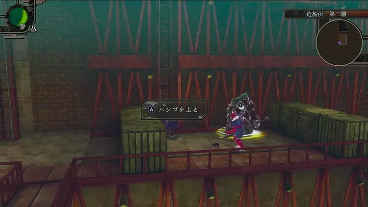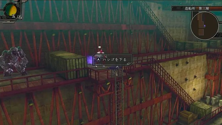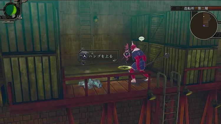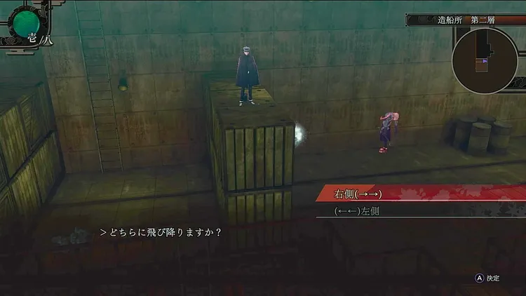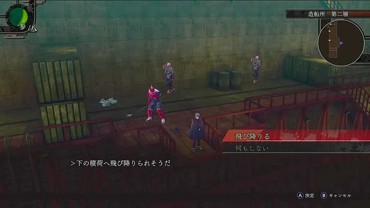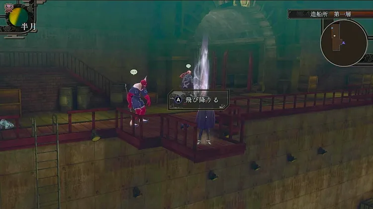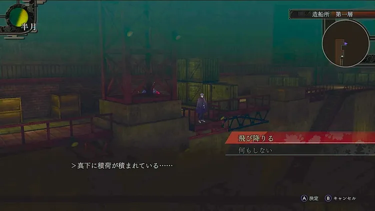 階段を戻り、コンテナ近くから下へ飛び降りる