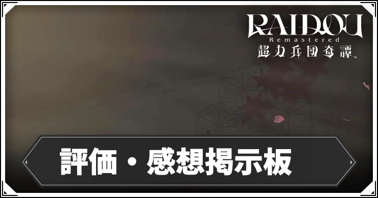 ライドウリマスターの「評価・感想掲示板」について掲載しています。ライドウリマスター(RAIDOU Remastered: 超力兵団奇譚)のプレイヤー同士の交流にご活用ください。