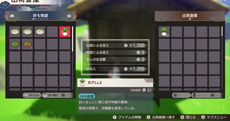 ・出荷倉庫にカブを入れる