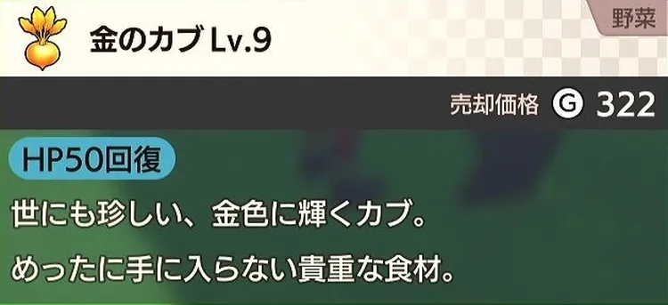 金のカブをレベルMAXの9まで上げると、売値が322Gまで上がるのでさらに効率が上がる。剣の神器で収穫してレベルの高い種を入手→レベル高い種から育てるを繰り返して作物レベルを上げていこう。