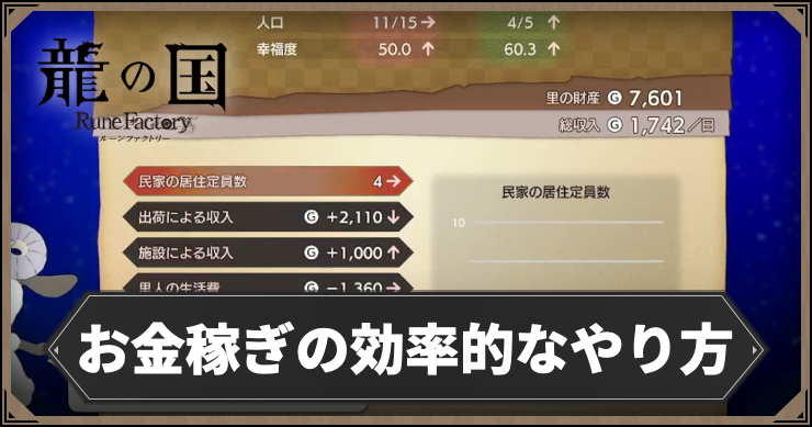 龍の国ルーンファクトリーの「金策」について掲載しています。お金稼ぎの効率的なやり方をまとめていますので、龍ファク / 龍の国ルンファクの攻略にお役立てください。