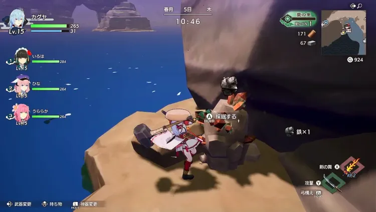各エリアの木や鉱床からは、1日1回採取が可能。毎日欠かさず採取して木材や石材を集めよう。