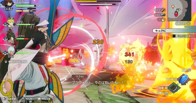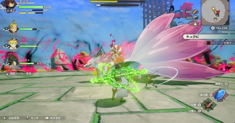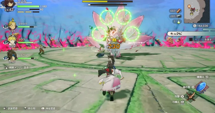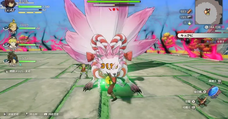 どの攻撃も受けてしまうと厄介な攻撃が多いので、中距離を保つか、つねにキュウビの正面に立って気弾が見える位置で戦うのがおすすめ。