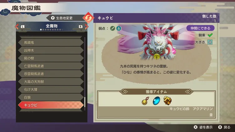 龍の国ルーンファクトリーの「キュウビ」について掲載しています。攻略情報、出現場所や入手アイテム、大きさや仲間にできるかをまとめていますので、龍ファク / 龍の国ルンファクの攻略にお役立てください。