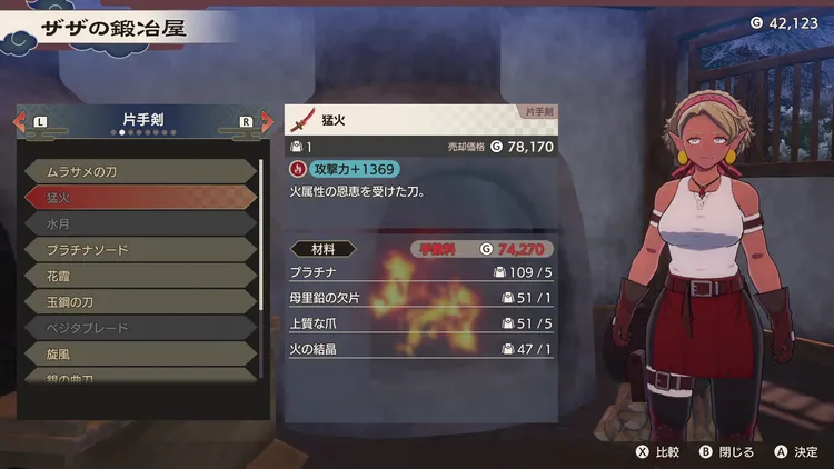 ハウンド戦までで手に入るレシピの中では「猛火」が攻撃力1369も上昇する強力な武器なのでこちらもスキルレベルと相談して武器種をどうするか考えよう。