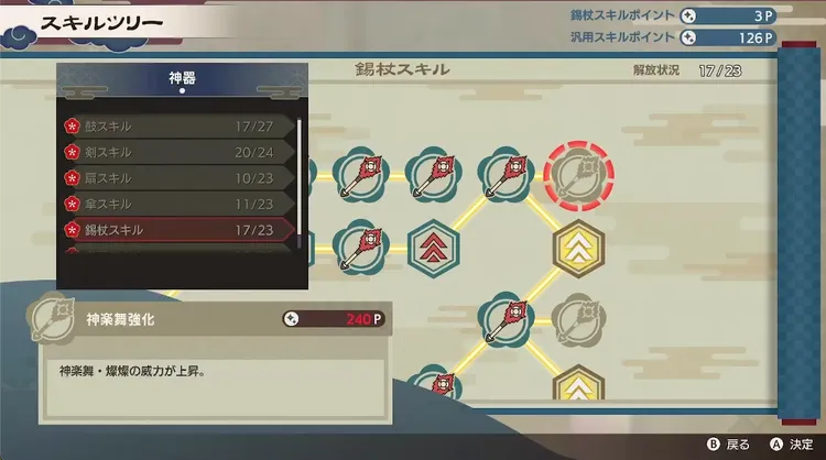 金華坑道で錫杖の舞を使い、スキルポイントを貯めておこう。