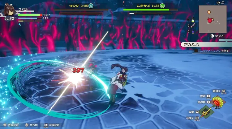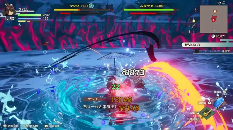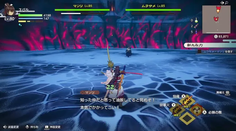 先にムラサメを倒したい場合はマツリを巻き込みつつ攻撃すると効率が良いだろう。