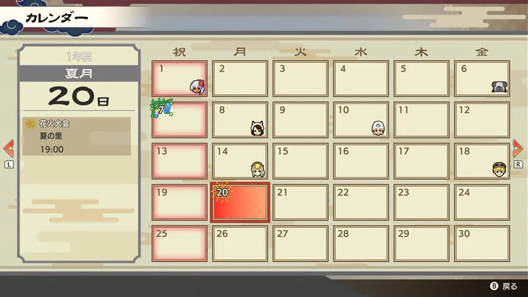 マツリが仲間に加入すると、夏月20日に花火大会が発生する。花火の色決めが17:00まで、花火大会開始が19:00開始なので、スケジュールに気をつけよう。