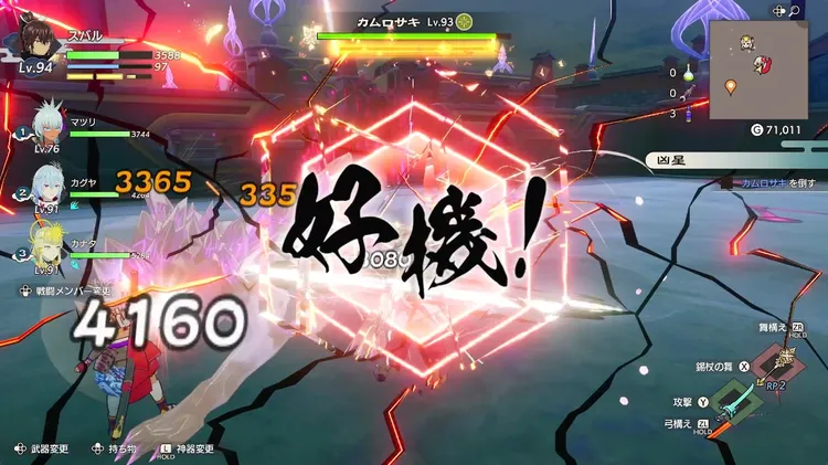 覚えたての神薙なども使いたくなる場面ではあるが、弱点属性の神がかりの舞の方が普通に火力が出せるので錫杖の舞による神がかりの舞を狙おう。