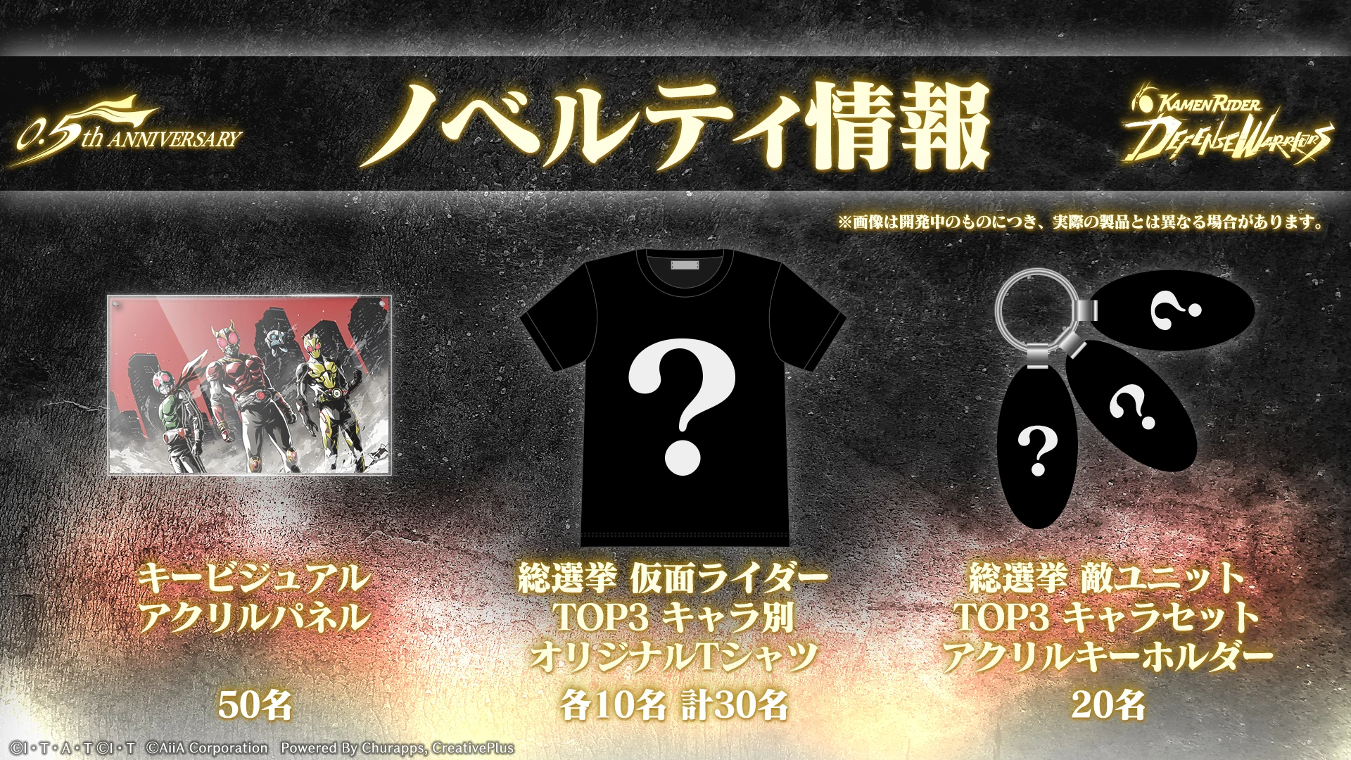 4月28日(火)17:00より特設ページにて「ライDユニット総選挙」を開催。対象は登場済みの仮面ライダーおよびエネミーユニットで、1日1回投票可能。投票完了画面をXにハッシュタグ投稿でオリジナルノベルティ抽選(100名)に応募可。