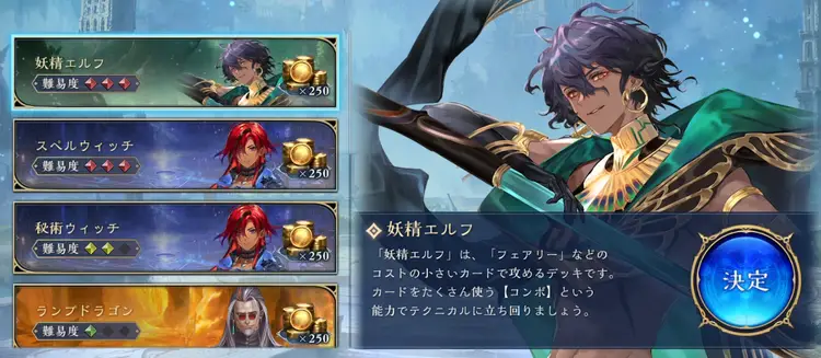 デッキ作成のエリアに移動すればあとは流れで勝手に進みプレイヤー側が考える要素は特にないので、とりあえず指示に従っていればOK