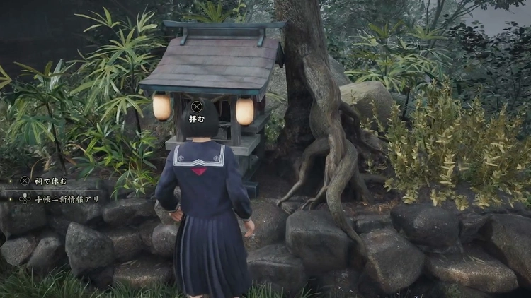 祠で休むことでセーブが可能なので、見かけたら拝んでおこう。また、祠では着替える(服装の変更)も可能だ。