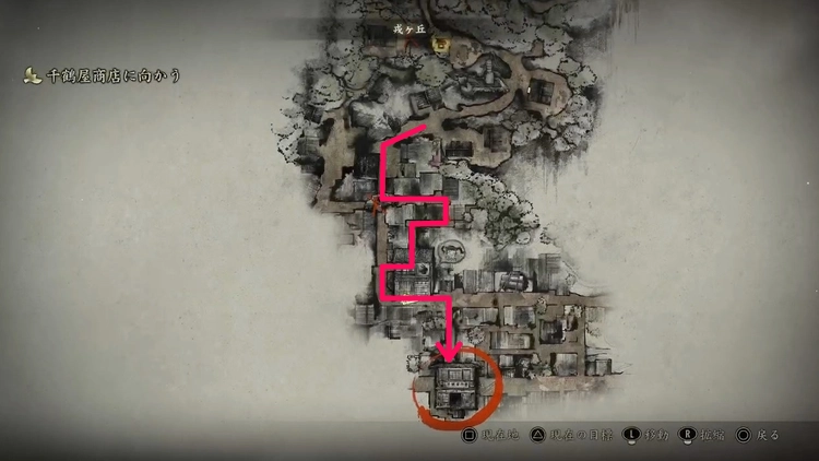 千鶴屋は、地図の下の方にある駄菓子屋。