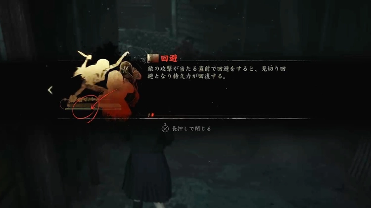敵の攻撃に合わせてタイミングよく回避をすることで見切り回避となり持久力が回復するというテクニックもあるので、バケモノとの戦闘が発生した時に活用しよう。