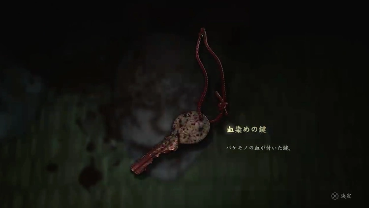 1階を調べたら、2階のふすまの部屋へ向かおう。部屋の奥にバケモノの顔が落ちており、調べると血染めの鍵が入手できる。