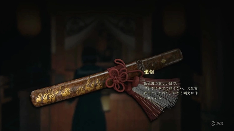 道中で入手する「懐剣」は、裏世界でのみ使用できる、耐久度が存在しない特殊な武器だ。
