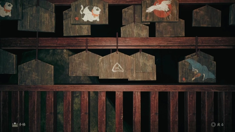 絵馬に書かれたテキストが、この後探すことになる「正しい絵馬」を見つけるためのヒントになっている。