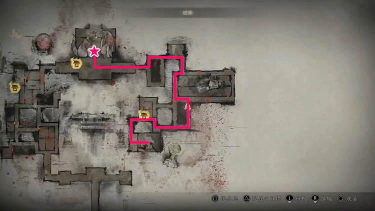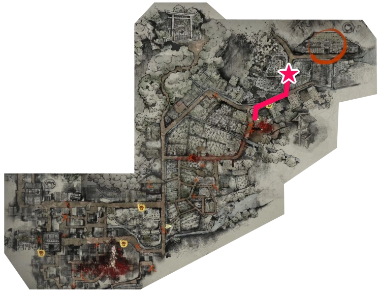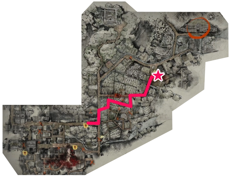 北東方向に探索を進め、マップ画像の★の位置にある民家へ向かおう。