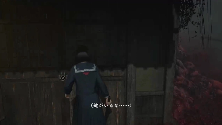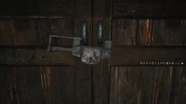 民家の蔵に入るには、先に鍵を探す必要がある。鍵は、庭の井戸にある工具箱の中に入っているが、工具箱を調べると、ムービーが挿入された後に戦闘が始まるため、庭の探索は先に行っておくのがおすすめ。