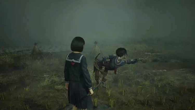 凛子の家を目指して、祠を過ぎ、田んぼに差し掛かると、ムービーが発生。謎解き「畑」が始まる。