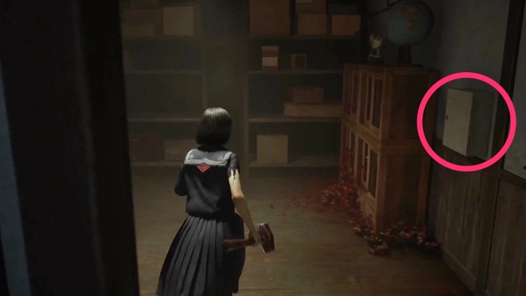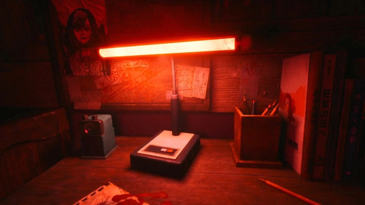 千鶴屋商店を模した部屋と同様に、凛子の部屋を模した部屋にも電気スタンドが置かれている。電気スタンドを調べると光が赤く変化する。