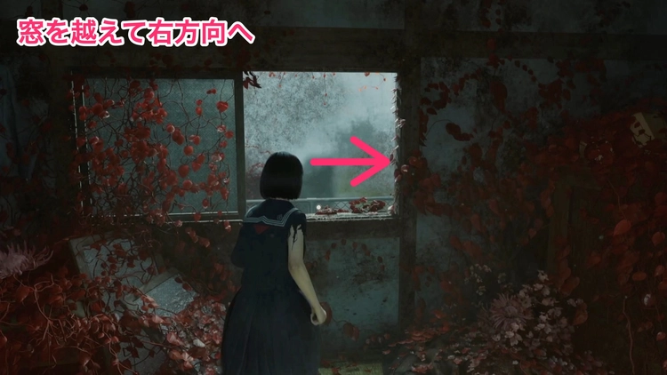 多面のバケモノを倒したら、部屋の奥の窓から屋外へ抜け出そう。