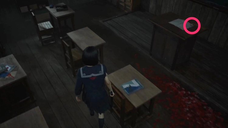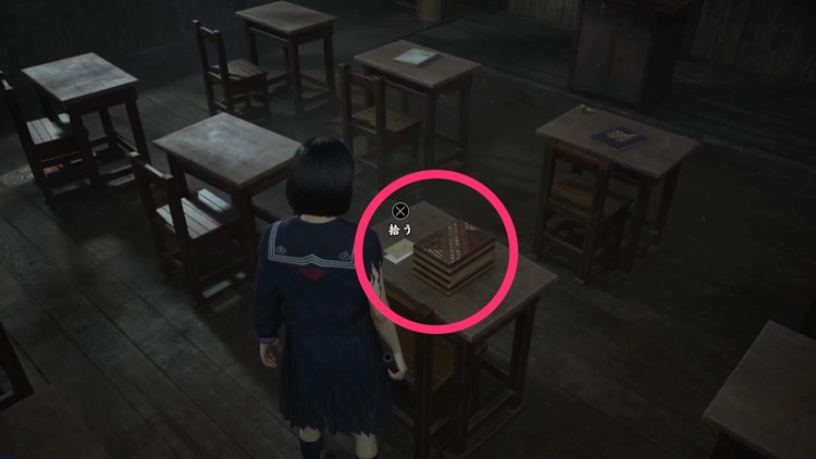 教室を模した部屋にも、他の部屋と同様に電気スタンドが置かれている。電気スタンドを調べると光が赤く変化する。