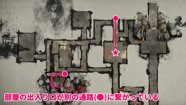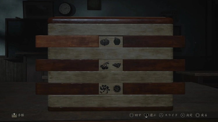 バケモノを倒してから再び机を調べることで「正面を向く狐の紋章」を回収することができる。