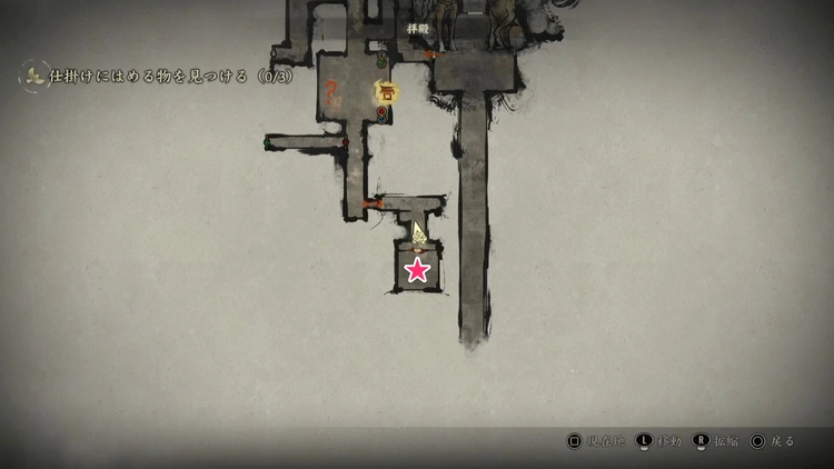 ※お稲荷様の紋章の扉は、胸飾りがないと開かない。胸飾りを持った状態で探索できるようになるのは2周目以降となる。