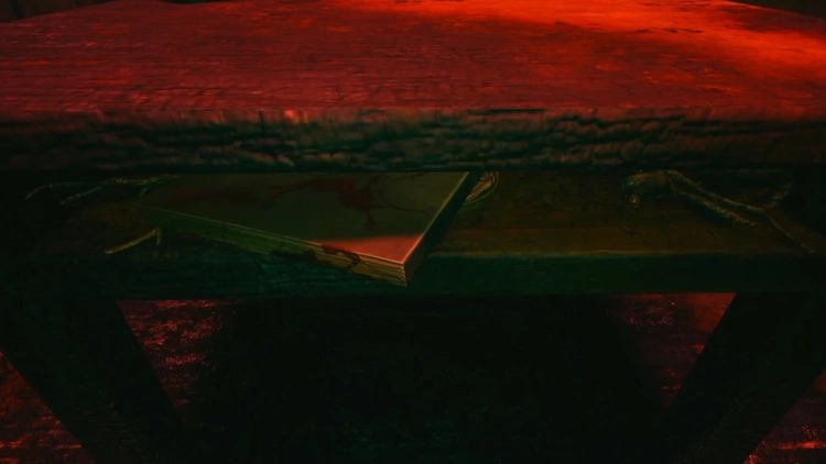 光が赤い状態で、中央の机を調べると、机の中を調べる演出が発生する。