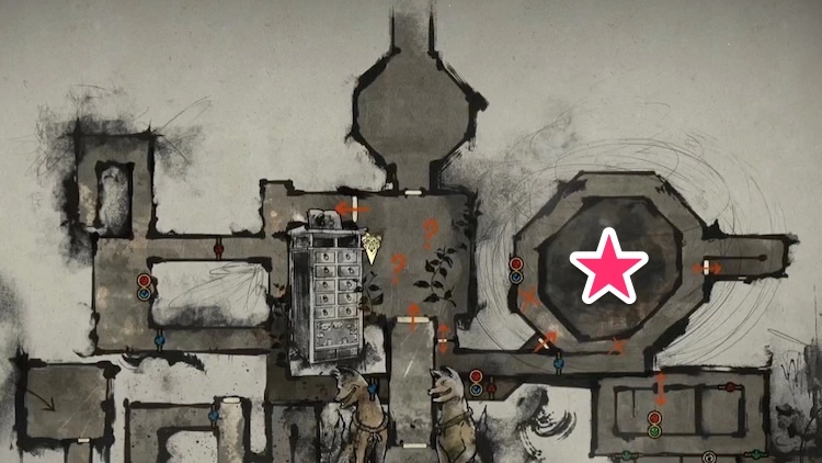 籠牢へ戻り、仕掛けに集めた紋章を全てはめ込もう。