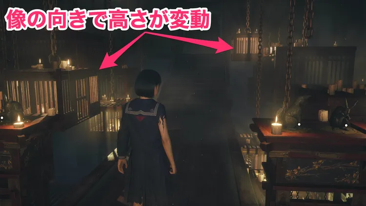 動く檻の対応は像によって決まっており、像の向きを変えると檻が上下する。