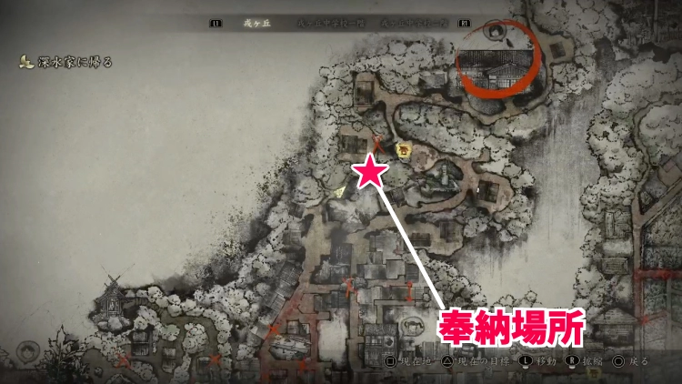 凛子らしきものを倒して夷が丘に戻ってきた後、深水家へ向かう過程で奉納するのがスムーズだ。
