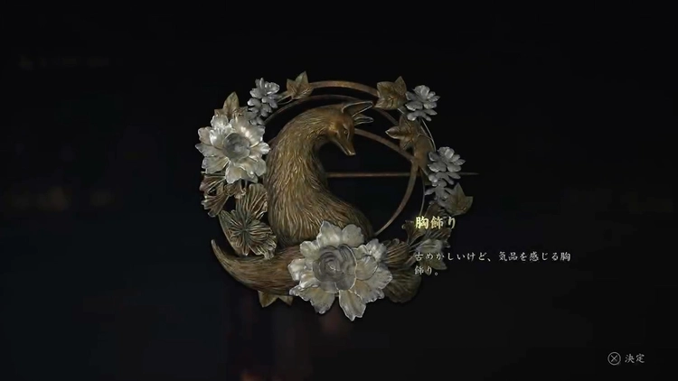 胸飾りは、1周目で両親撃破後に狐面の男から入手できるアイテム。2周目以降は最初から所持している扱いとなっている。