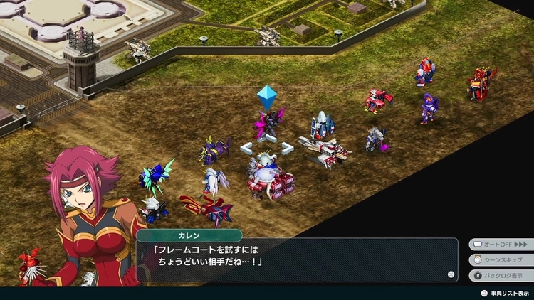 | 「攻撃指揮」「防御指揮」「特攻指揮」により、1ターンの間、効果範囲内のみかたパイロット(自機は除く)の能力を変化させる(行動回数を消費)。この効果は最大10回まで重複する。 |