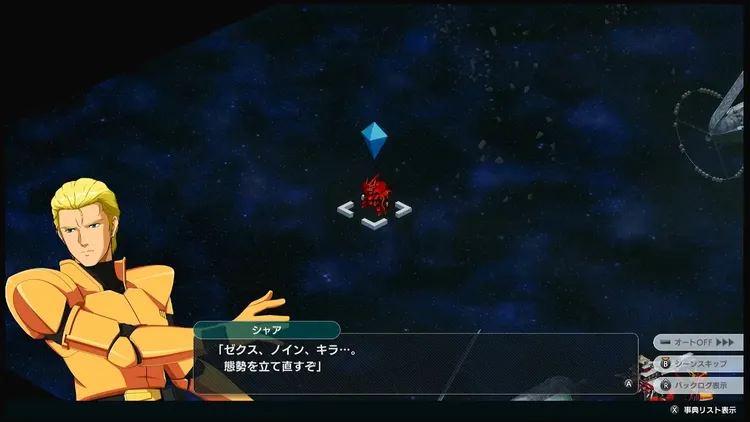 シャアは、チャプター3のサイドミッション「赤い彗星の襲来」の途中で加入する。