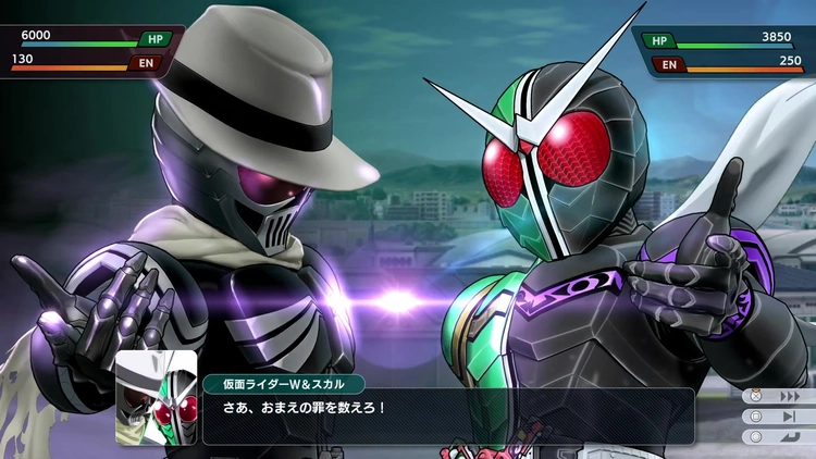仮面ライダーWはDLC①サイドミッション「始まりの夜に」で仮面ライダースカルが加入されると同時に、合体攻撃「ダブルライダーコンビネーション」が追加される。