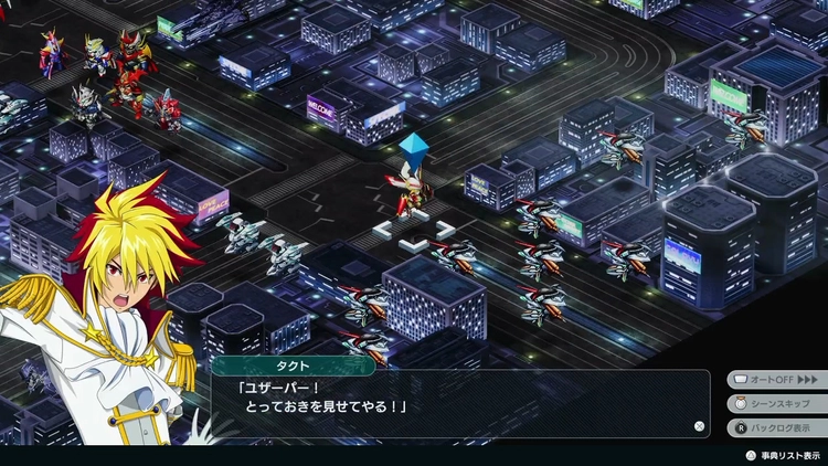 ユニットコマンド「土気高揚」によって隣接する全ての味方ユニットの能力値「格闘」「射撃」「命中」「回避」を1ターンの間、10上昇させる(行動回数を消費)。この効果は最大10回まで重複する。