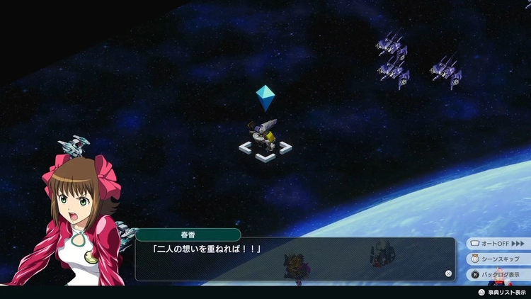 | 「攻撃指揮」「防御指揮」「特攻指揮」により、1ターンの間、効果範囲内のみかたパイロット(自機は除く)の能力を変化させる(行動回数を消費)。この効果は最大10回まで重複する。 |