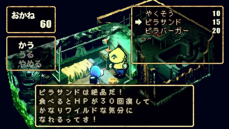 ピラサンドは、「つかう」で食べるとHPが30回復する。