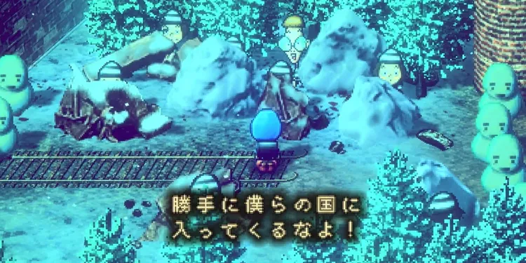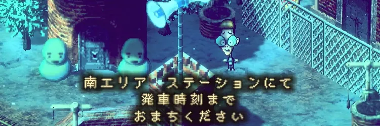 ステーションのホームや付近にいるコドモたちと会話すると、しあわせの湖(アイスレイク)行きの列車が到着する。