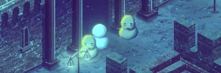 塔の入り口を雪だるまが塞いでいる場合は、雪だるまが画面に入らない程度まで距離を取ることで、雪だるまが少し動く。距離を取る→近づくを繰り返して雪だるまを動かそう。