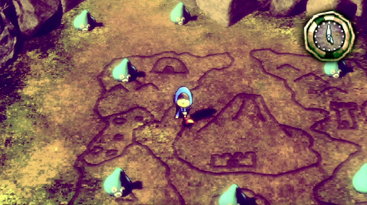 城下町から外に出て、さらに南下した先には地面にワールドマップが描かれたエリアがある。