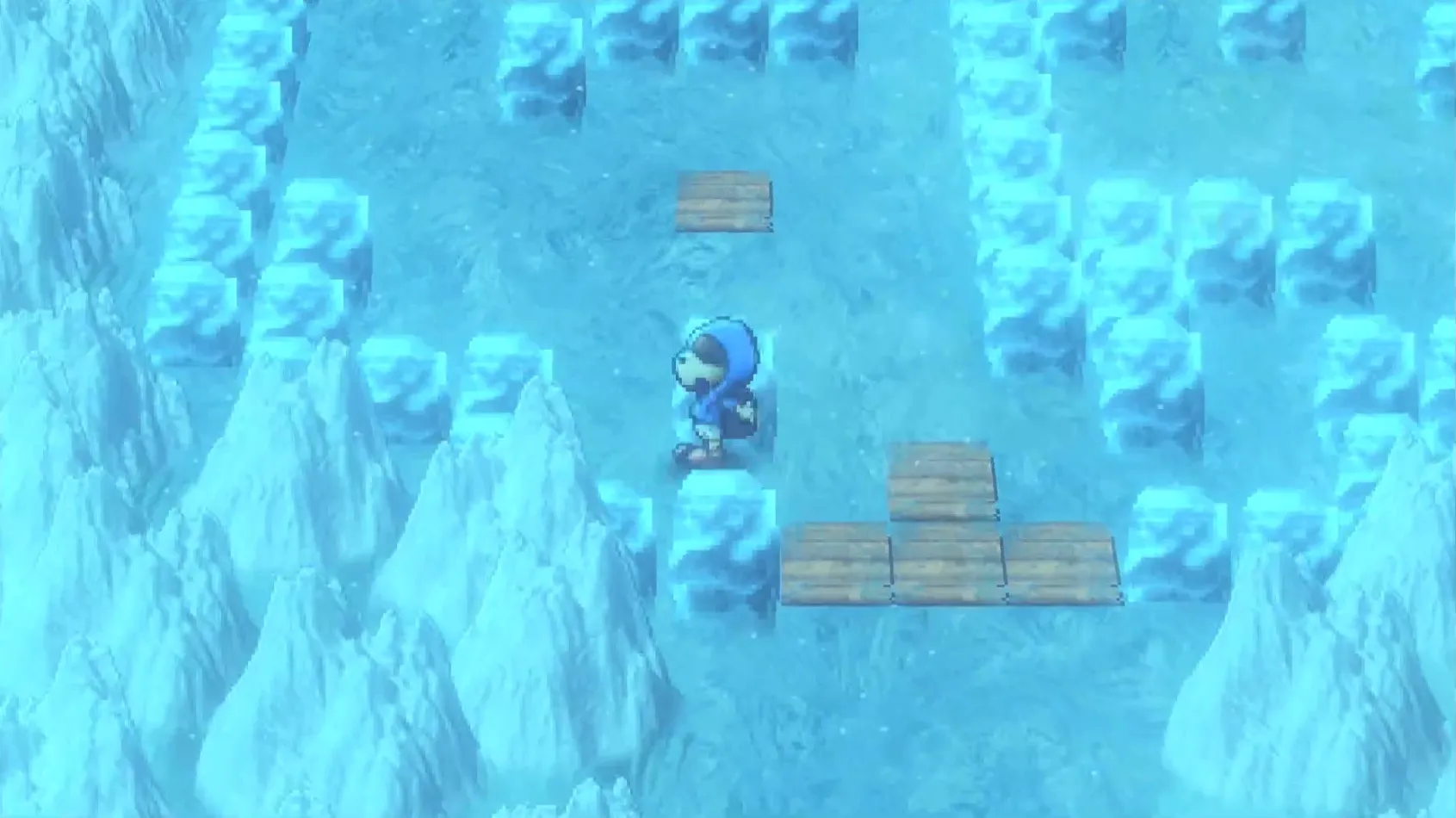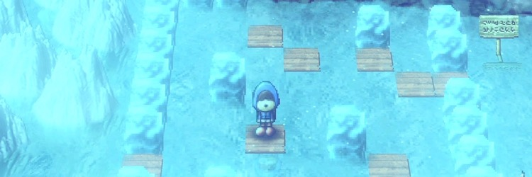 アイスレイクには、滑る氷の床のギミックが計3箇所存在する。