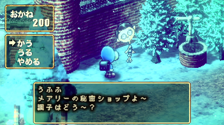 メアリーに話しかけると、アイテムや装備を売ってくれる。
