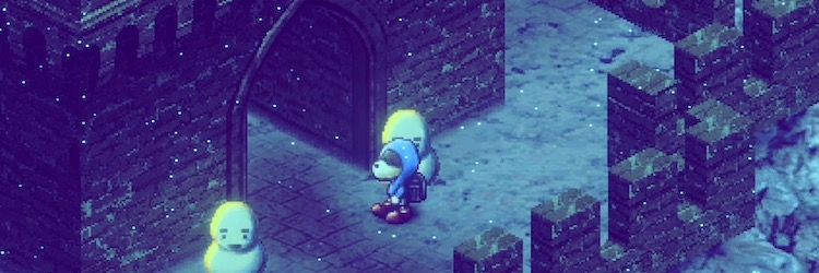 さばきの城の左側のスペースにある木にいたずらすることで、ゆきなだれを引き起こして、雪だるま状態になることができる。