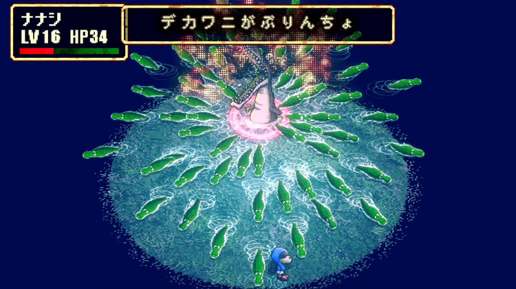 ワニの大群が放射状に泳いでくる中で、水中からワニが接近してきて捕食してくる。ワニの大群の隙間を縫って、水中から追尾するワニの影から逃げる必要があるため、回避はややシビアになっている。