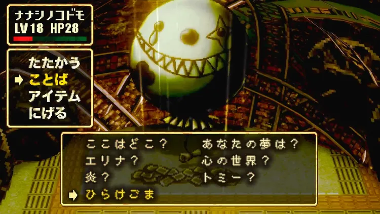 マジックバルーンはルーレットで倒すことも可能だが、ボス戦までに「汚いヘルメット」を入手していれば、ことばを使って勝つことができる。