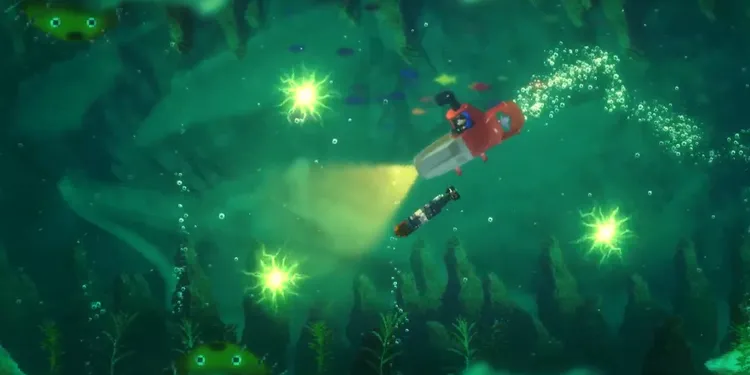 潜水艦に乗ると脱出ミニゲームが始まる。敵を倒しながら進んでいき、地上に上がることができれば次のエリアに進むことができる。