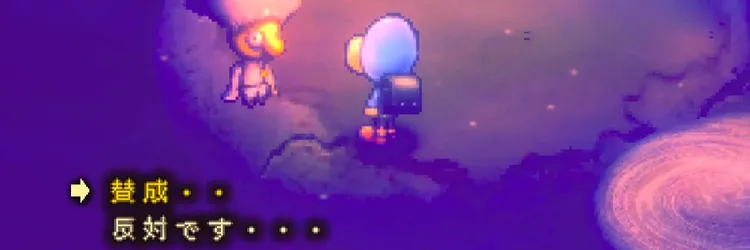 - シラタ家3人組のイベント後に一番左の桟橋へ向かう・最後の選択肢は賛成を選ぶ
